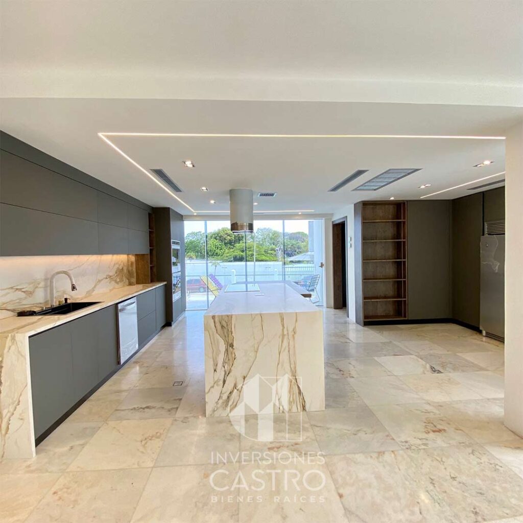 ✅Amplia sala-Comedor, cocina moderna concepto abierto con acabados de lujo, Piso de Mármol.